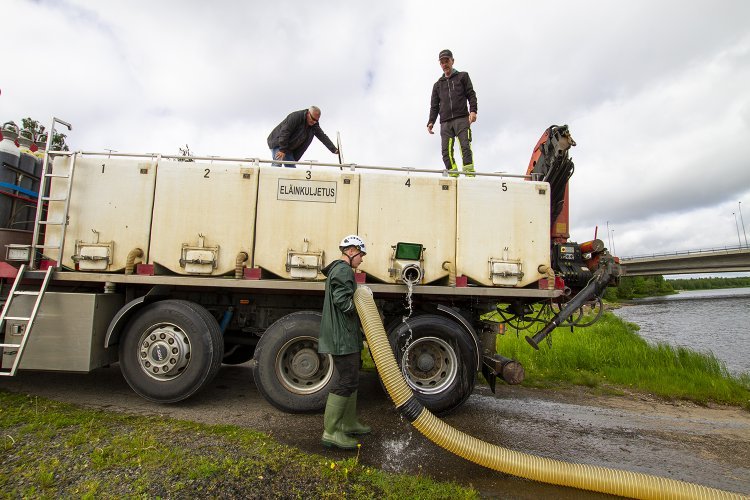 Mukana istutusta valvomassa oli myös Lapin Ely-keskuksen kalatalousasiantuntija Kare Koivisto. Hän tarkasti kalasäiliöt ja tarkkaili, että istutus meni niin kuin piti.