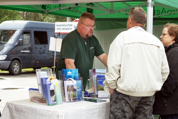Kolmen teltan markkinatiloissa tavoitettiinkin Muikkumarkkinoilla kävijät tehokkaasti ja käytännönläheisesti. Lapin Kalatalouskeskuksen osassa jaettiin tietoa kalastuksenvalvonnasta sekä osakaskunta- ja kalatalousaluetoiminnasta ja kalatalousneuvonnasta.