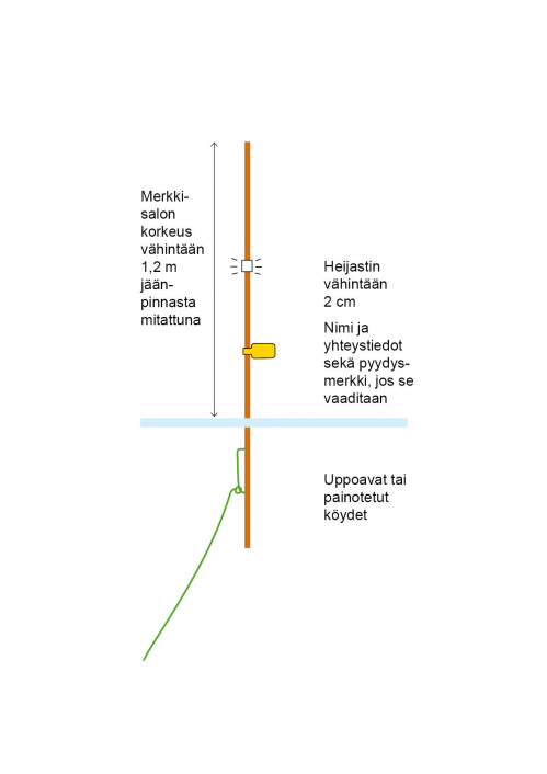 Muista että pyydysten oikea merkintä on turvallisuusasia! Jäillä liikkujien turvallisuutta ei voi liikaa korostaa.
